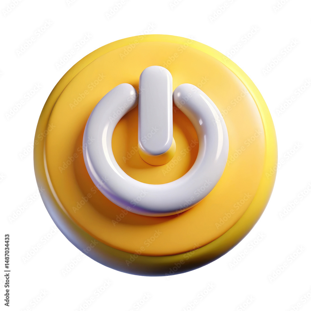 Canvas Print : Power button 3d icon in plastic style isolated on transparent white background, clipping path