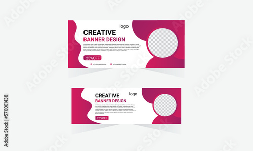 The watermark will not be included on Canvas Print.: Professional business web ad banner template with photo place modern layout white background