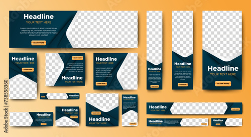 The watermark will not be included on Canvas Print.: Professional business web ad banner template with photo place - modern layout blue background and ora