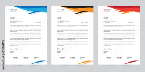 The watermark will not be included on Canvas Print.: Professional letterhead design template with three color concepts, clean and modern letterhead