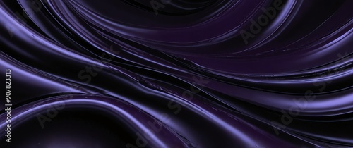The watermark will not be included on Canvas Print.: Purple abstract metallic liquid waves plain black background wide angle panoramic view backdrop copy
