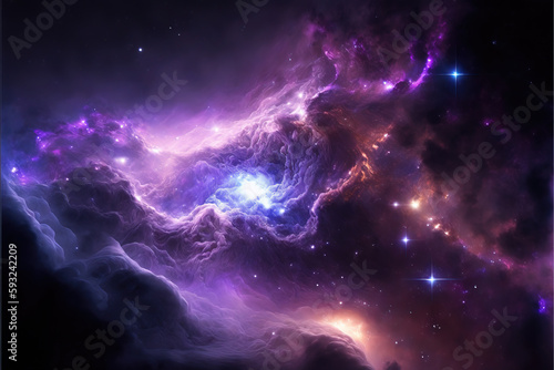 Canvas Prints purple and violet nebula with stars. fantasy galaxy generative ai background