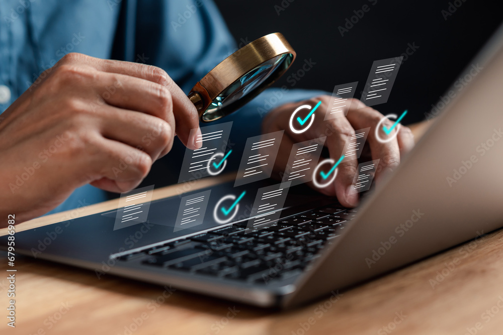 Canvas Print : Quality certificate and checklist document analyst target marketing planning assignment with quality