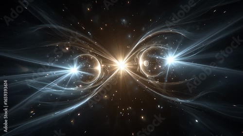 The watermark will not be included on Canvas Print.: Quantum entanglement concept with glowing lines and stars - perfect for science-related projects, pre