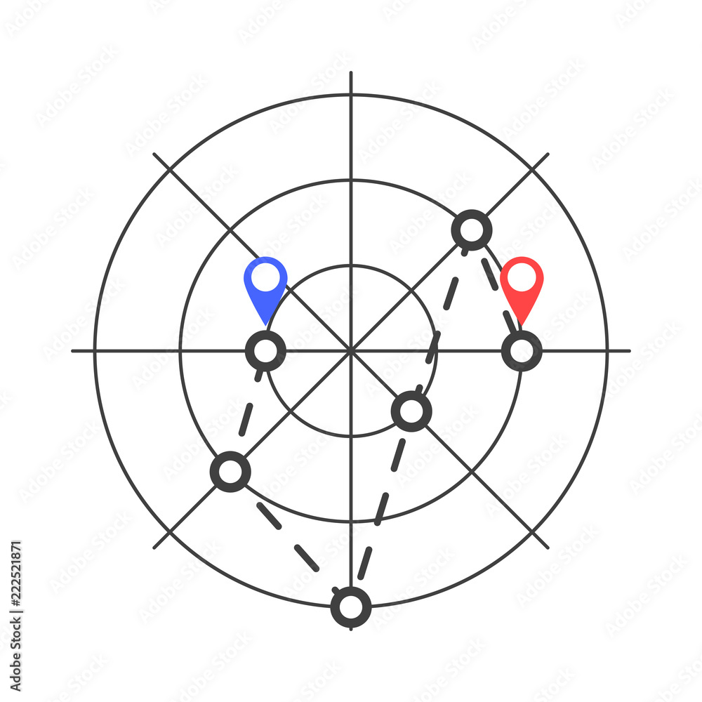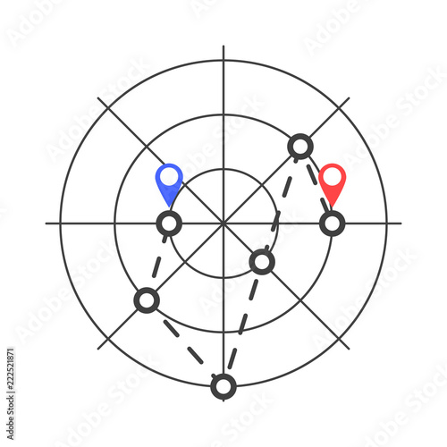 The watermark will not be included on Canvas Print.: Radar icon with the initial and end point of geolocation - vector on white background
