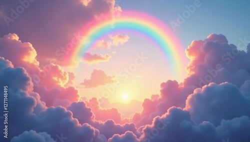 The watermark will not be included on Canvas Print.: Rainbow circle in the clouds with gentle and soft colors and subtle rays of light, light, atmosphere