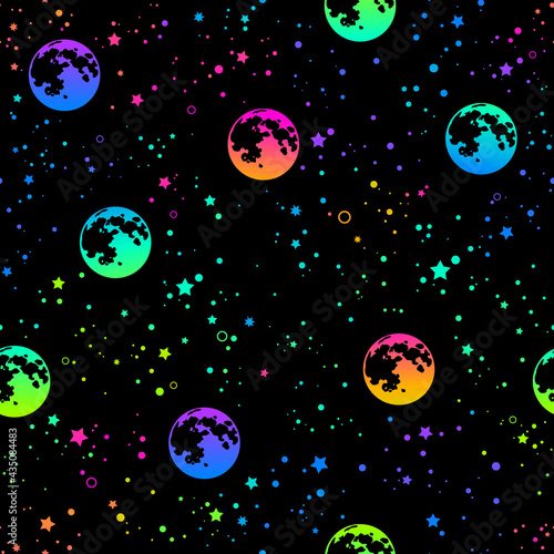 The watermark will not be included on Canvas Print.: Rainbow esoteric pattern with sun moon and stars