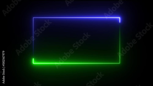 The watermark will not be included on Canvas Print.: Rectangle picture frame with two tone neon color motion graphic - abstract glowing neon rectangle bor