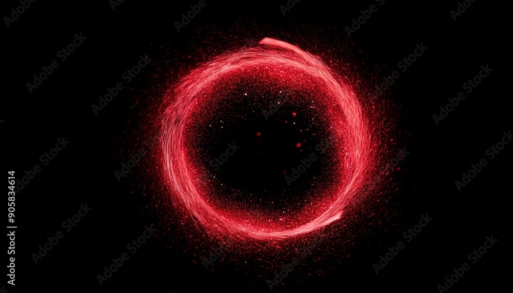 The watermark will not be included on Canvas Print.: Red abstract ring particle effect swirling particles visual effect layer overlay isolated on transpa