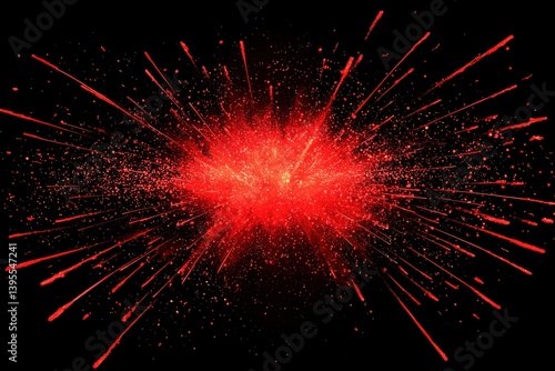 The watermark will not be included on Canvas Print.: Red explosion with bright sparks on a black background design