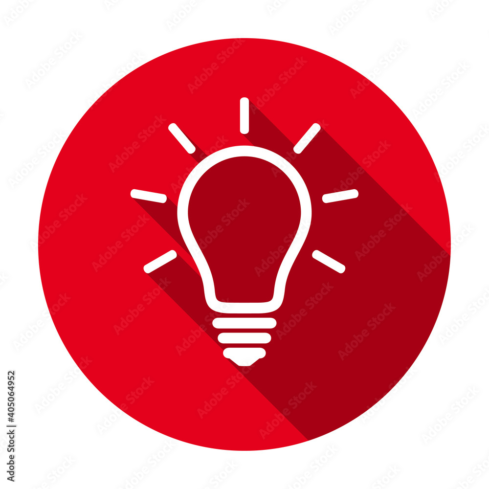 Canvas Prints red flat round glowing light bulb line icon, button with long shadow isolated on a white background. - Canvas Prints Canvas Prints red flat round glowing light bulb line icon, button with long shadow isolated on a white background. - Canvas Prints