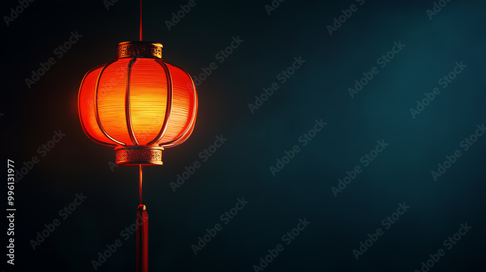 The watermark will not be included on Canvas Print.: Red lantern glowing softly against dark background creates warm and inviting atmosphere - intricate d