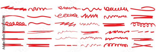 The watermark will not be included on Canvas Print.: Red line pen strokes, shapes, highlight underline lines isolated on white background - simple charcoa