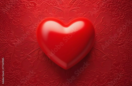 The watermark will not be included on Canvas Print.: Red volumetric heart on a red background - generative ai