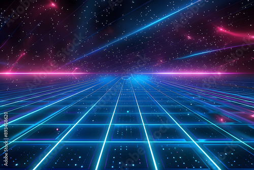 Canvas Prints retro 80s video game background with grid of blue light streaking in space