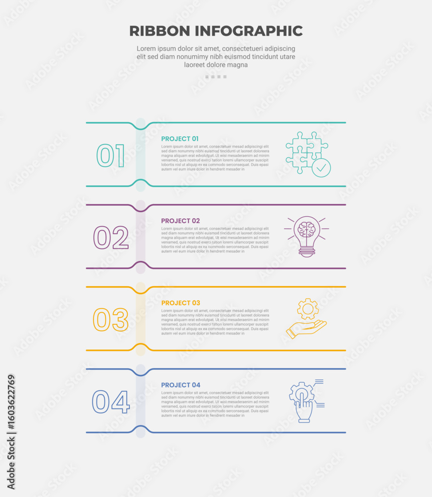The watermark will not be included on Canvas Print.: Ribbon base shape infographic outline style with 4 point template with creative open box on vertical