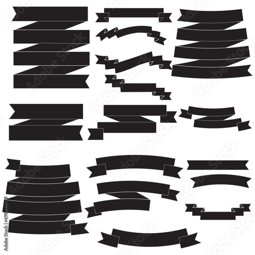 The watermark will not be included on Canvas Print.: Ribbons black different shapes set - vector element for decoration different configuration - text banne