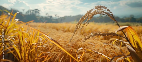 The watermark will not be included on Canvas Print.: Rice field with dried leaves in the background offering copy space image
