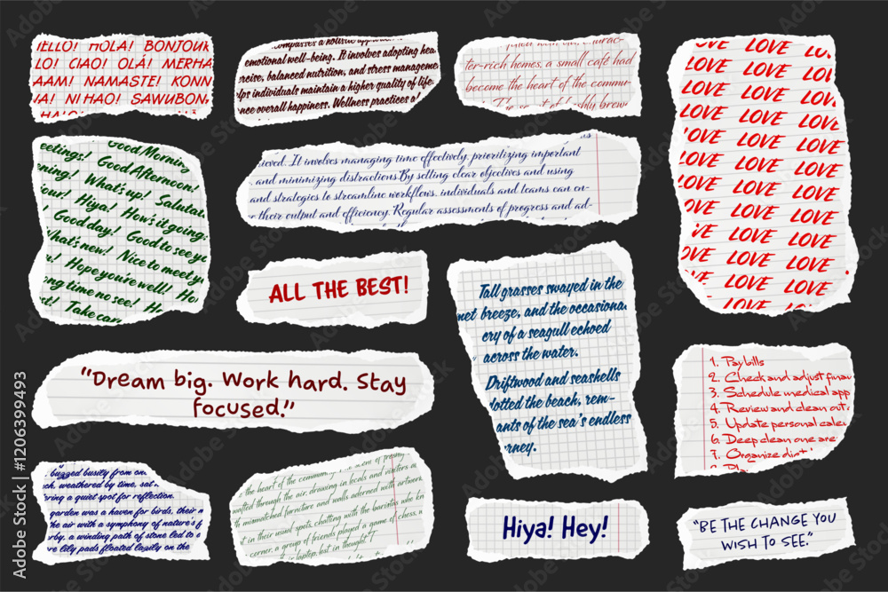 Canvas Prints ripped paper strips with handwritten text. realistic crumpled paper scraps with torn edges. shreds o