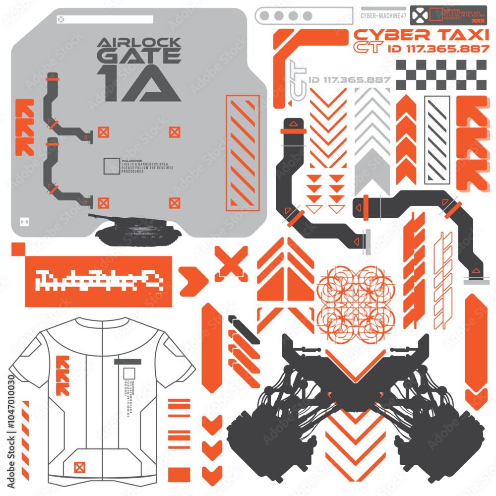 The watermark will not be included on Canvas Print.: Robot cyberpunk y2k 2000s gaming futuristic icon pattern set collection template hud for branding fa