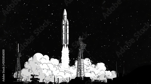 The watermark will not be included on Canvas Print.: Rocket launch ascending into the night sky