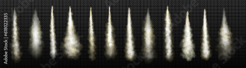 The watermark will not be included on Canvas Print.: Rocket launch smoke trail vector - isolated realistic jet takeoff explosion speed effect - white space