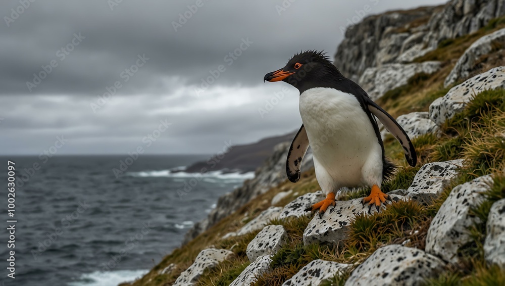 Canvas Prints rockhopper penguin climbing a steep cliff in the falklands. - Canvas Prints Canvas Prints rockhopper penguin climbing a steep cliff in the falklands. - Canvas Prints