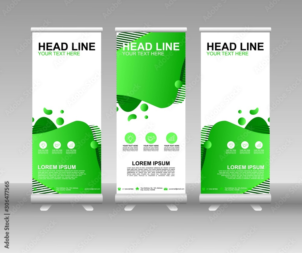 The watermark will not be included on Canvas Print.: Roll up banner stand - vertical vector template design - modern flag banner design with abstract backg