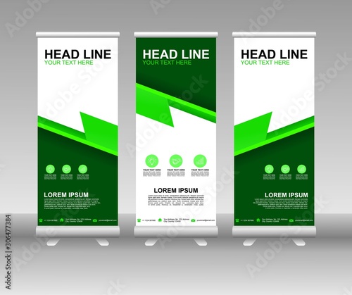 The watermark will not be included on Canvas Print.: Roll up banner stand - vertical vector template design - modern flag banner design with abstract backg