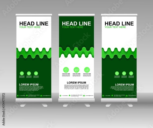 The watermark will not be included on Canvas Print.: Roll up banner stand - vertical vector template design - modern flag banner design with abstract backg