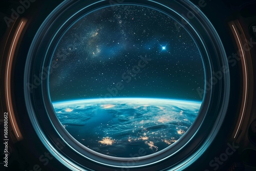 Canvas Prints round spaceship window frame with view of earth and stars, clean mockup background, sci-fi minimal d - Canvas Prints Canvas Prints round spaceship window frame with view of earth and stars, clean mockup background, sci-fi minimal d - Canvas Prints