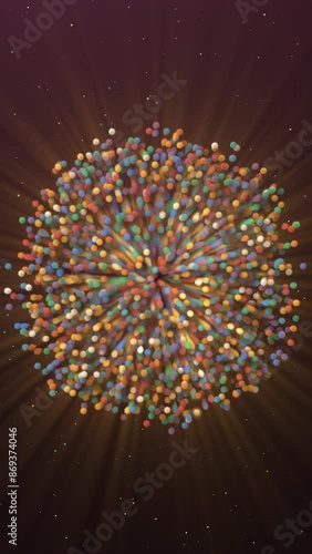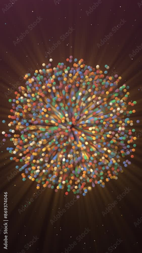 The watermark will not be included on Canvas Print.: Round spherical object of many small glowing particles - motion - multicolored ball shrinking and disa