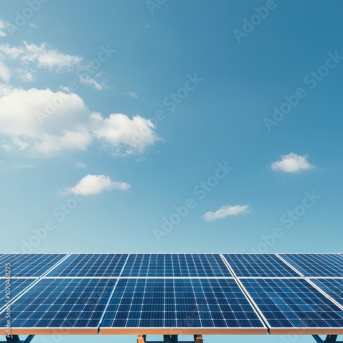 The watermark will not be included on Canvas Print.: Row of solar panels with cloudy sky in the background