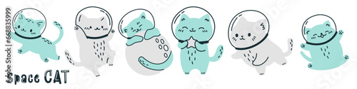 Canvas Prints scandinavian style vector set. cats in spacesuits flying in space. space cat inscription. cute astro
