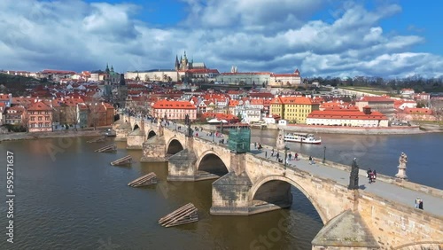 The watermark will not be included on Canvas Print.: Scenic spring panoramic aerial view of the old town pier architecture and charles bridge over vltava