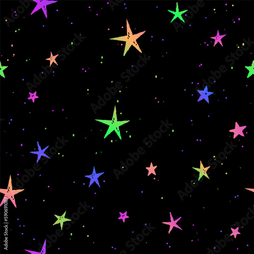 The watermark will not be included on Canvas Print.: Seamless pattern of cute colorful stars on a black background