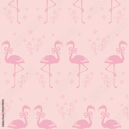 Canvas Prints seamless pattern of elegant pink flamingo with ribbon