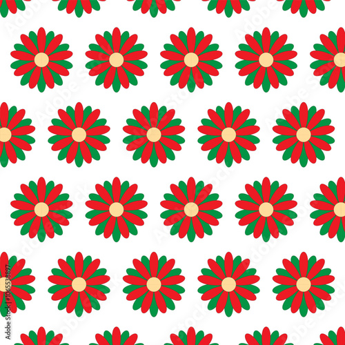 The watermark will not be included on Canvas Print.: Seamless pattern with flowers - red and green petals isolated on white background - vector graphic illus
