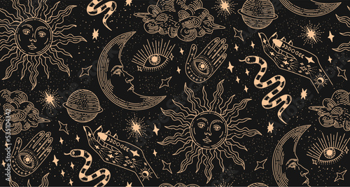 Canvas Prints seamless pattern with magical elements. set of linear vector illustrations. celestial illustrations