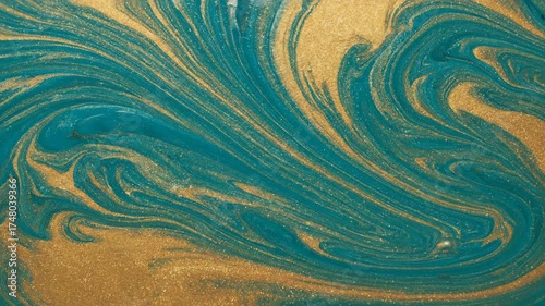 Canvas Prints seamlessly looping video of flowing liquid marble texture in vibrant teal and gold, creating an orga