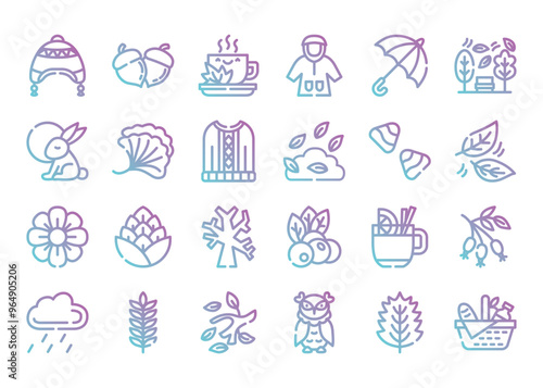 The watermark will not be included on Canvas Print.: Seasonal autumn in gradient outline icon set - vector illustration