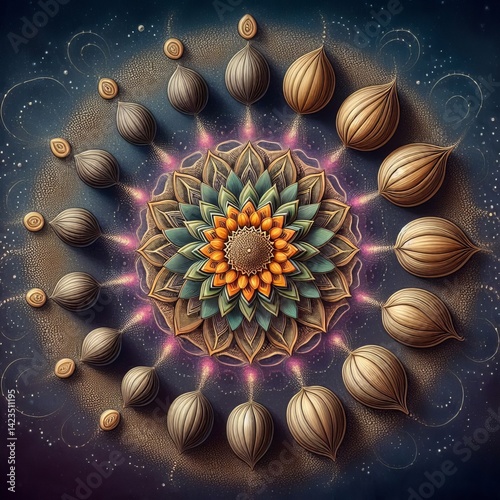 The watermark will not be included on Canvas Print.: Seed representing stages of creation