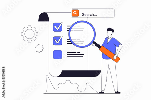 Canvas Print : Seo optimization concept with people scene in flat outline design - man with magnifier researching tr