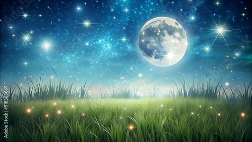 The watermark will not be included on Canvas Print.: Serene moonlit meadow nightlight generative ai