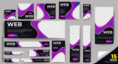 The watermark will not be included on Canvas Print.: Set bundle of ads banner template design with black and blue background - vector