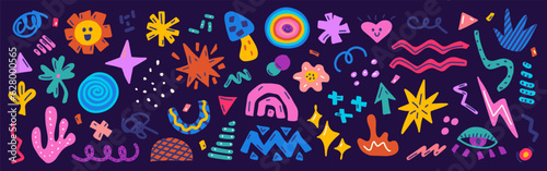The watermark will not be included on Canvas Print.: Set colorful various hand drawn shapes and doodle objects, abstract elements for modern design, vect