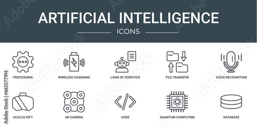 The watermark will not be included on Canvas Print.: Set of 10 outline web artificial intelligence icons such as processing, wireless charging, laws of r
