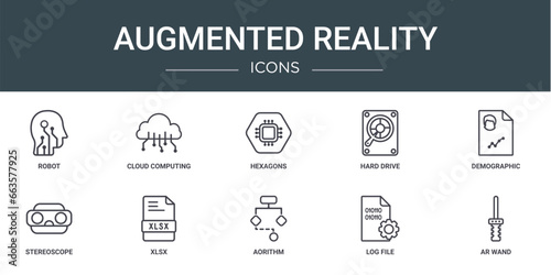 The watermark will not be included on Canvas Print.: Set of 10 outline web augmented reality icons such as robot, cloud computing, hexagons, hard drive,