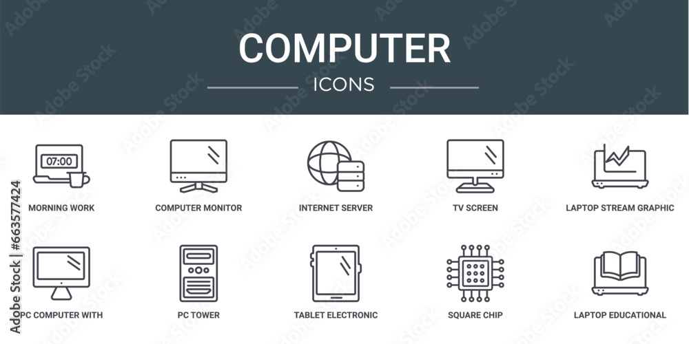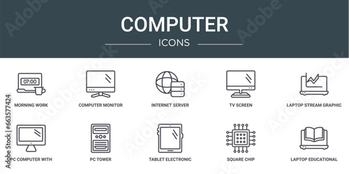 Canvas Prints set of 10 outline web computer icons such as morning work, computer monitor, internet server, tv scr