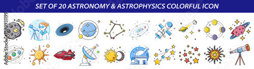 The watermark will not be included on Canvas Print.: Set of 20 colorful astronomy & astrophysics vector icons
